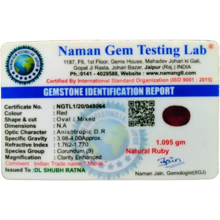 Ruby Stone (Manik) The Ruby gemstone is also called Manik, Ratan Raja and is considered the king of gems. Apart