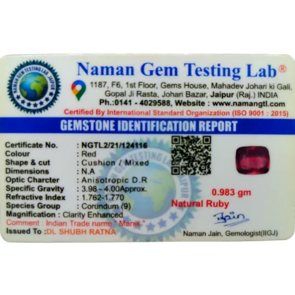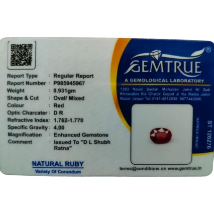 Ruby (Manik)-4.2 Carat (4.61 Ratti)-Origin-Bangkok