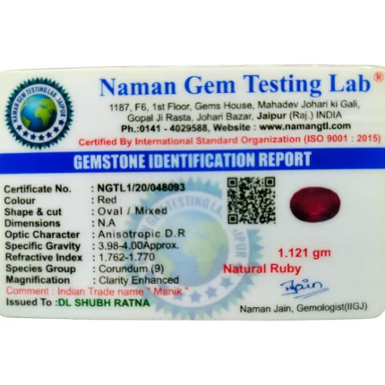 Ruby (Manik)-5 Carat (5.49 Ratti)-Origin-Bangkok