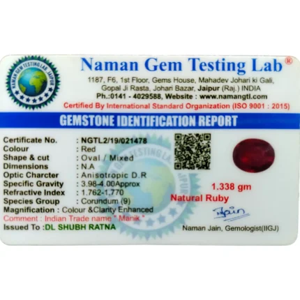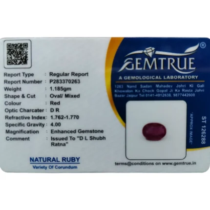 Ruby (Manik)-7.1 Carat (7.80 Ratti)-Origin-Bangkok