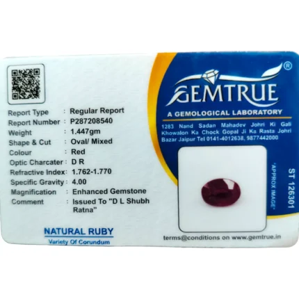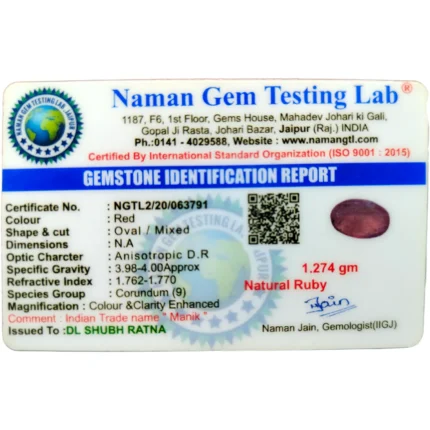 Ruby (Manik)-6.37 Carat (7 Ratti)-Origin-Bangkok