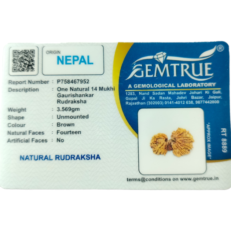 Natural/Original 14 Mukhi Gauri Shankar Rudraksha (Origin: Nepal) with FREE Lab Testing Certificate.